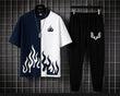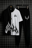 Mens 2pc Micro Plain Premium Fire Printed Tracksuit (TROUSER+SHIRT)